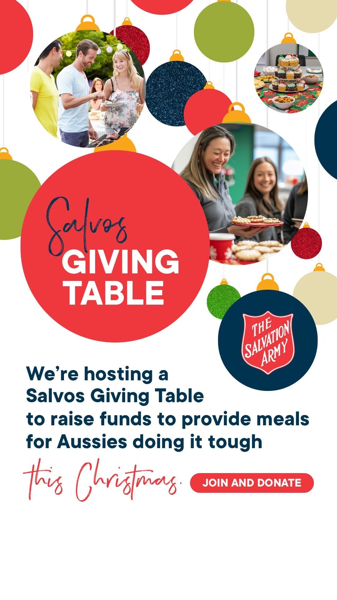 This festive season, we are hosting a Salvos Giving Table to help provide meals for Aussies doing it tough.